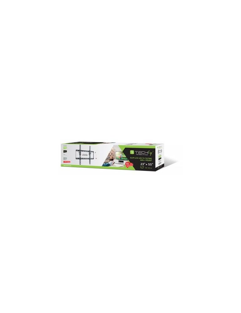 Techly 020638. Greutate maximă capacitate: 45 kilograme, Mărime minimă ecran: 58,4 cm (23"), Mărime maximă ecran: 139,7 cm (55"), Distanță minimă montare VESA: 100 x 100 milimetri, Distanță maximă montare VESA: 400 x 400 milimetri. Unghi de înclinare: 0 - 12°, Distanța până la perete (min): 3,6 cm, Distanța până la perete (max): 3,6 cm. Culoarea produsului: Negru