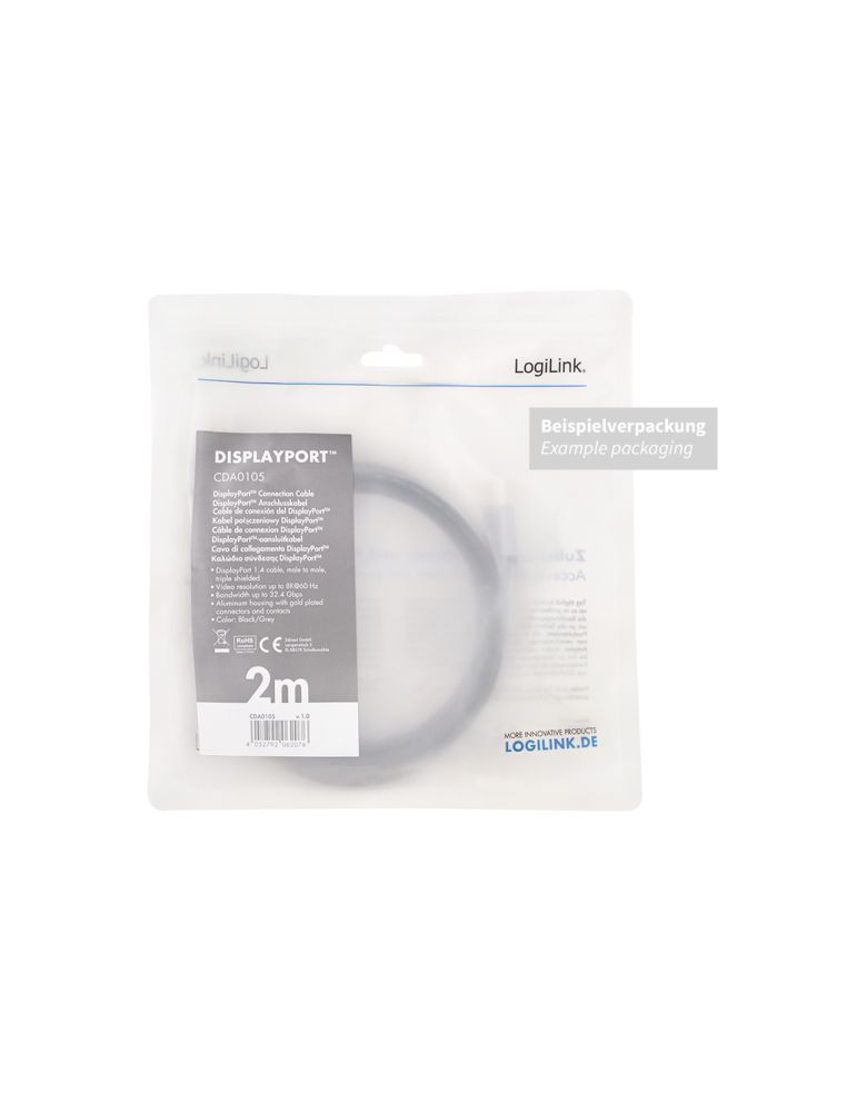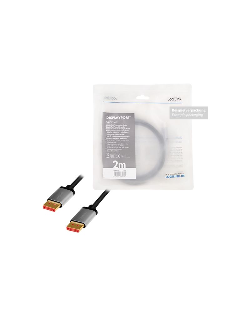 Logilink cda0104 displayport cable dp/m to dp/m 8k/60 hz aluminium