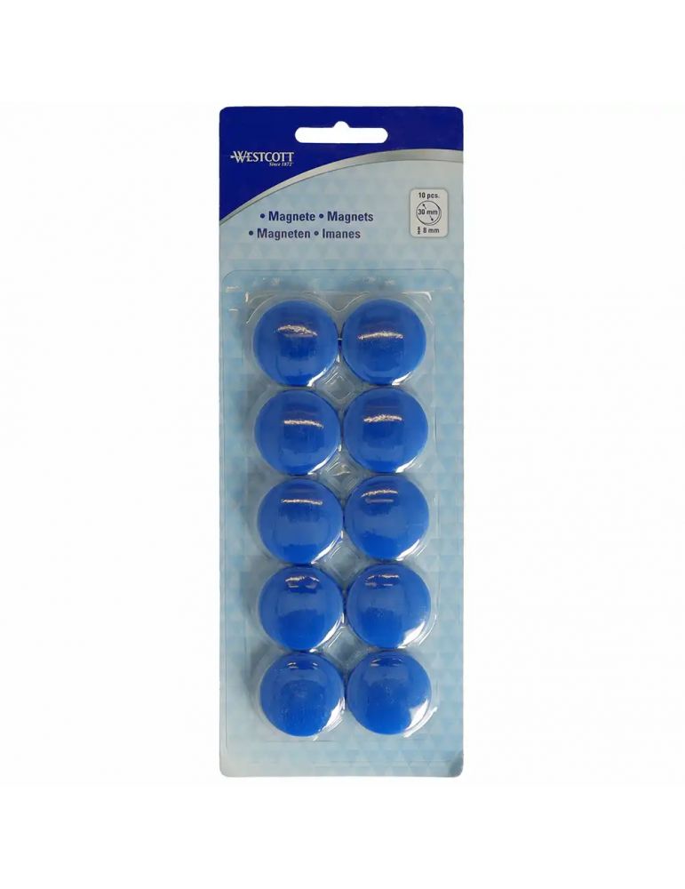 Set 10 magneti Westcott, d30 mm, sustin 6/8 coli, albastru