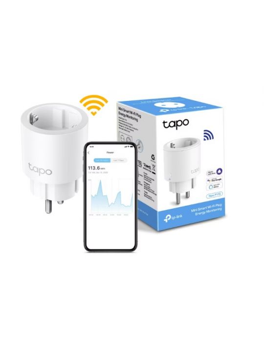Priza smart TP-Link Tapo P115, 3680W, control de la distanta, control vocal, alb