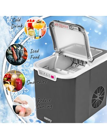 Îți place să bei băuturi reci? Sau poate le servesti oaspeților sau clienților? Cu siguranță vei aprecia aparatul de cuburi de gheață Camry. Produce o jumătate de kilogram de cuburi de gheață pe oră, care sunt depozitate într-o cameră izolată termic. Aparatul de gheata CR 8073 are un rezervor de apa usor de umplut cu o capacitate de 2,2 litri. Caracteristici tehnice: Eficiența producției de gheață: 12kg/24h Primele cuburi de gheață în 10 minute Capacitate rezervor de apă: 2,2 l Clasa climatica: N Capacul transparent vă permite să verificați cantitatea de gheață produsă Nu este nevoie să vă conectați la o sursă de apă - apa este turnată în dispozitiv Economie de energie - oprire automată după finalizare Diode LED care informează despre funcționarea dispozitivului, necesitatea de a adăuga apă și umplerea recipientului cu gheață Volumul: <70dB Dimensiuni: 249x360x327mm Izolație: C5H10 Putere de intrare: 0,8 A Agent frigorific: R600a/24g Alimentare: 220-240V ~ 50 Hz Tip priză: E/F Culoarea carcasei: Negru Material carcasa: plastic Culoare cablu: negru Lungime cablu: 164 cm