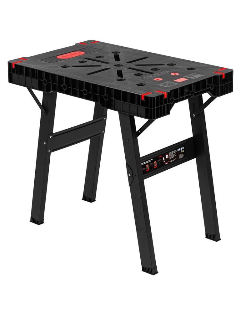 Specificații tehnice:• Capacitate maximă: 150 kg• Dimensiuni desfășurate: 860 × 800 × 550 mm• Material: plastic ușor și rezistent• Sistem de pliere: buton rapid• Funcții suplimentare: conectoare pentru mai multe mese, găuri pentru menghine