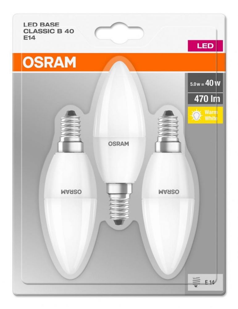 Set 3 becuri led osram soclu e14 putere 5w forma lumanare lumina alb calda alimentare 220 - 240 v 000004052899972490 (include - Caracteristici
