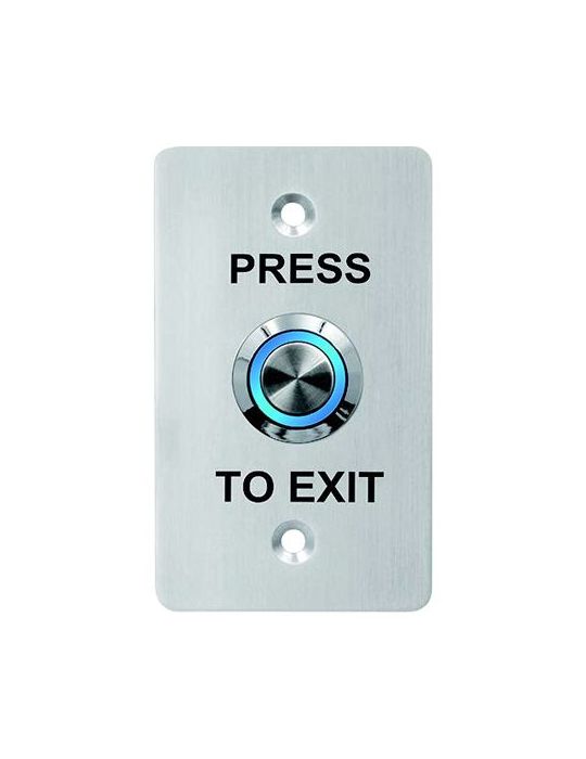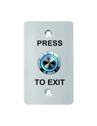 Buton de iesire din inox 304, montaj aparent, folosit in sisteme de control acces.Tensiune functionare: 12 - 24 VccTip contact: NO/NC/COMMaterial: inox 304 1.8 mm grosimeDimensiuni: 86 x 50 x 40 mmDurata de viata mecanica: testat 500.000 cicluriTemperatura operare: -20 °C ÷ +55 °CUmiditate in operare: 0 ÷ 95 %Altele: Backlight LED albastru / verde