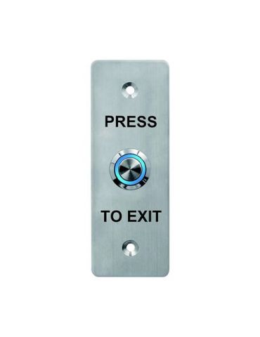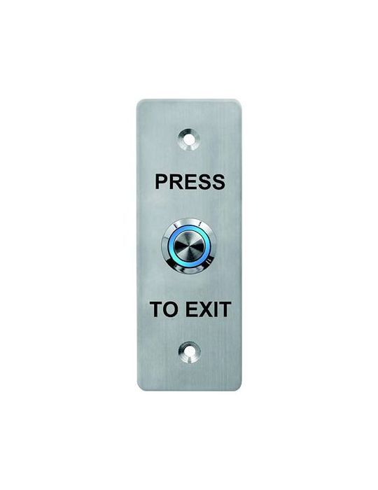 Buton de iesire din inox 304, montaj aparent, folosit in sisteme de control acces.Tensiune functionare: 12 - 24 VccTip contact: NO/NC/COMMaterial: inox 304 1.8 mm grosimeDimensiuni: 115 x 40 x 25 mmDurata de viata mecanica: testat 500.000 cicluriTemperatura operare: -20 °C ÷ +55 °CUmiditate in operare: 0 ÷ 95 %Altele: Backlight LED albastru / verde