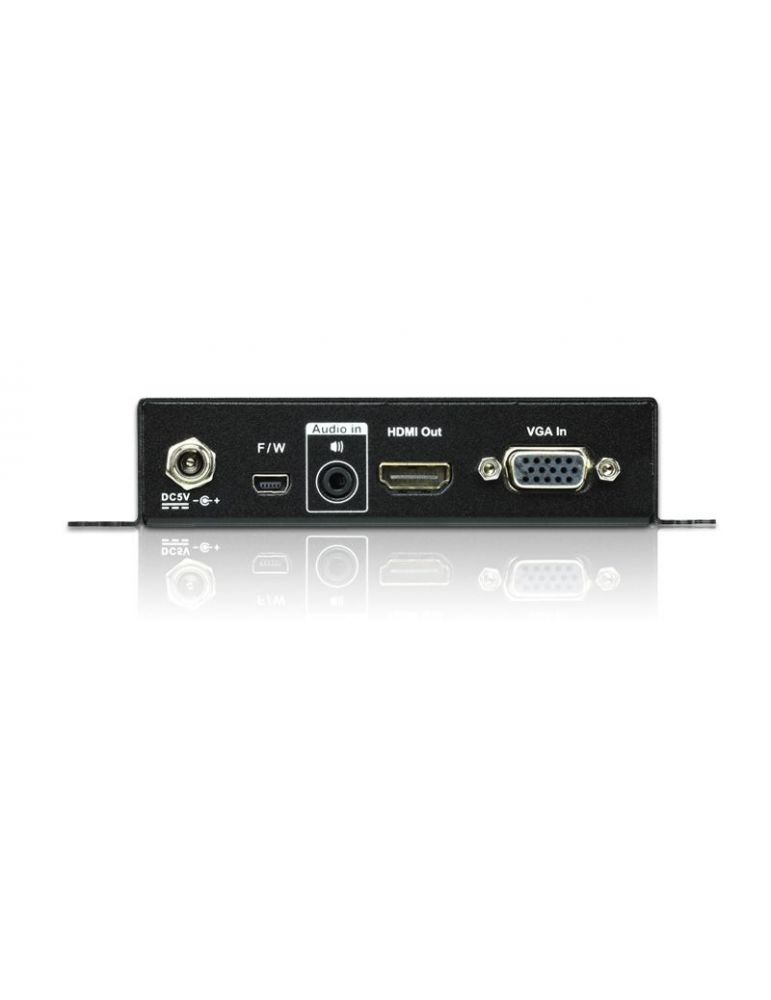 ATEN VC182-AT-G. Culoarea produsului: Negru, Material carcasă: Metal. Rezoluție video maximă: 1920 x 1200 Pixel, Video rezoluțiile: 800 x 600,1024 x 768,1280 x 1024,1280 x 720,1400 x 1050,1600 x 1200,1680 x 1050,1920 x 1080, Moduri video suportate: 480i, 480p, 1080i, 1080p. Interfaţă gazdă: VGA (D-Sub), Interfață ieșire: HDMI. Tensiunea de intrare: 5 V, Consum de energie (tipic): 1,56 W. Lățime: 110 milimetri, Adâncime: 83 milimetri, Înălţime: 28 milimetri