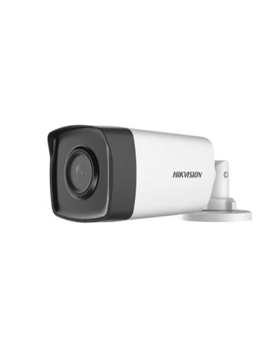 Camera de supraveghere video Analog HD - Hikvision, design nou si imbunatatit al modelului de carcasa 16D0T-IT3/IT5, prevazut cu suport mai rezistent si mai usor de reglat, dimensiune carcasa 216.6 X 78.9 × 75.4 mm, cu 31.7 mm mai mare decat versiunea 16D0T-IT3/IT5(C), calitate foarte buna a imaginii, rezolutie HD 2MP (1980x1080)@30fps, lentila 3.6mm, unghi vizualizare 79.6°, distanta IR 80 metri, semnal iesire TVI/CVI/AHD/Analog selectabil din dipswitch.Model / producator: HIKVISIONSenzor: 2MP CMOS Image SensorRezolutie: 2MP (1920x1080)@30fpsLentila: 3.6 mm unghi vizualizare 79.6°Iluminare minima: 0.01 Lux (F1.2 AGC ON) 0 Lux IR pornitDistanta IR: tehnologie led IR EXIR pana la 80 metri IR Cut FilterAlimentare: 12 VDC±15% consum max. 4.7WSemanl video: TVI/AHD/CVI/CVBS selectabil din dipswitchDimensiuni: 78.9 à 75.4 à 216.6 mmGreutate: 320 gr.Altele: suport reglabil pe 3 axeTemperatura de functionare: -40°C ~ +60°C IP67