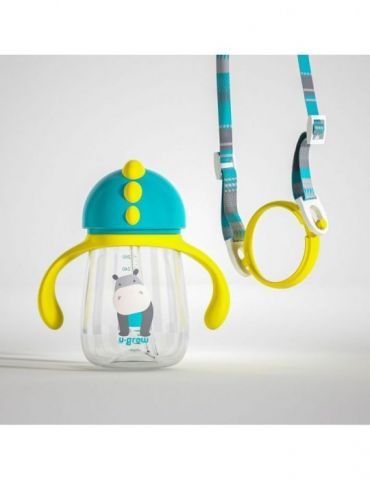 Pachet 3 in 1 cana 260 ml tritan cu 3 accesorii diferite pentru baut : tetina biberon cioc pai blue