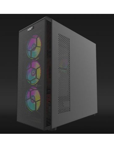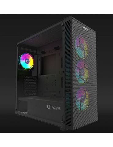 Carcasa Aqirys Naos Pro Mid Tower 3x bays 3.5 2x bays 2.5 panou lateral tempered glass 4 ventilatoare incluse 12 ventilatoare compatibile