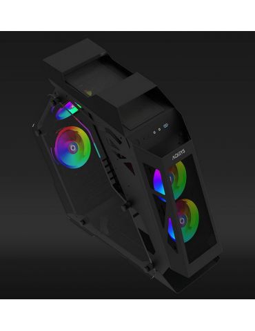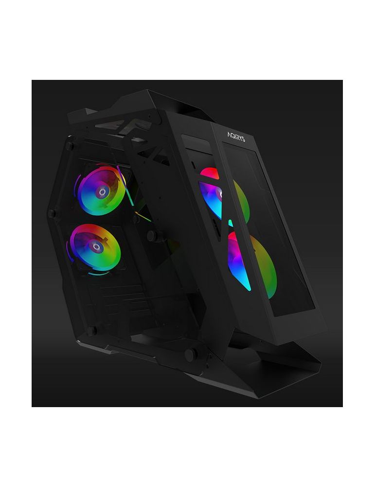 Carcasa Aqirys Saiph Mid Tower Black Case type: Midi Tower Materials: Tempered Glass (left & right side panel) Acrylic 0.6 mm SPCC steel ABS M/B support: Mini-ITX Micro-ATX PSU support: ATX 175 mm maximum length (bottom installation) VGA support: 270 mm maximum length CPU cooler support: 175 mm maximum height Liquid cooling support: Yes (max 35mm thickness) Front mount - 120/240 mm Top mount - 120/240 mm Rear mount - 120 mm Drive bays: 1x 3.5or 2x 2.5 Expansion slots: 4 horizontal Front panel I/O: 1x USB 3.0 HD Audio Reset button Illumination: ARGB (included ARGB hub controller with RF remote) Supported fans: 6 pieces - Rear 2x 120 mm Front 2x 120 mm Top 2x 120 mm Installed fans: 4 pieces - Rear 2x 120 mm (ARGB no PWM) Front 2x 120 mm (ARGB no PWM) Special features: open-air case removable magnetic dust filter cable management outlets