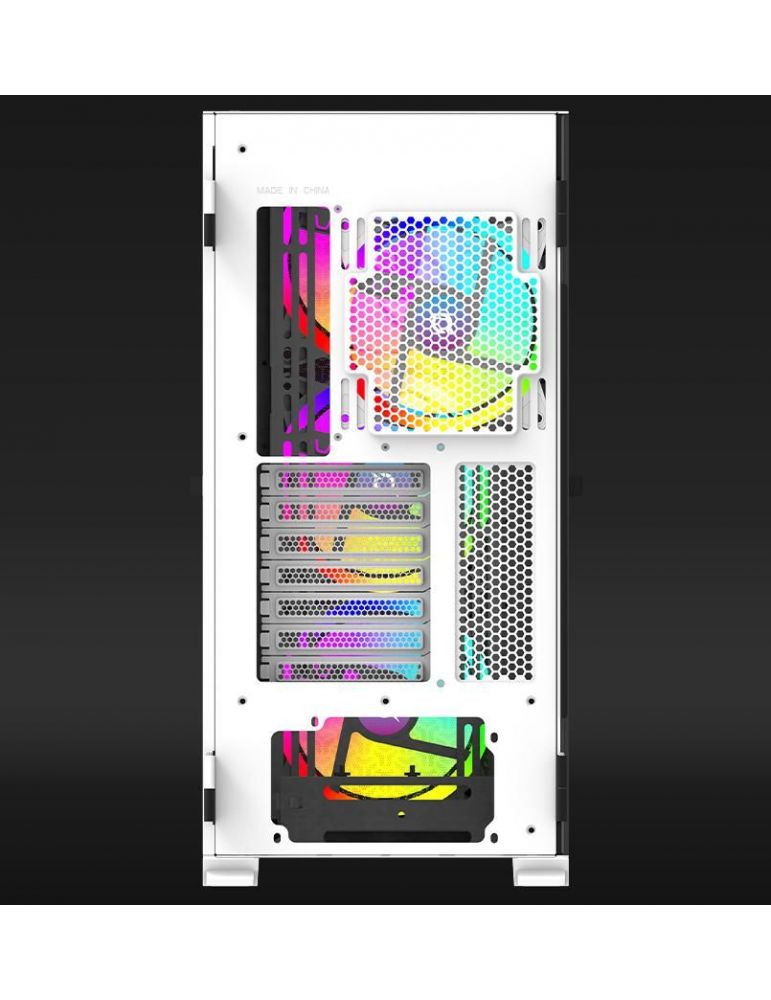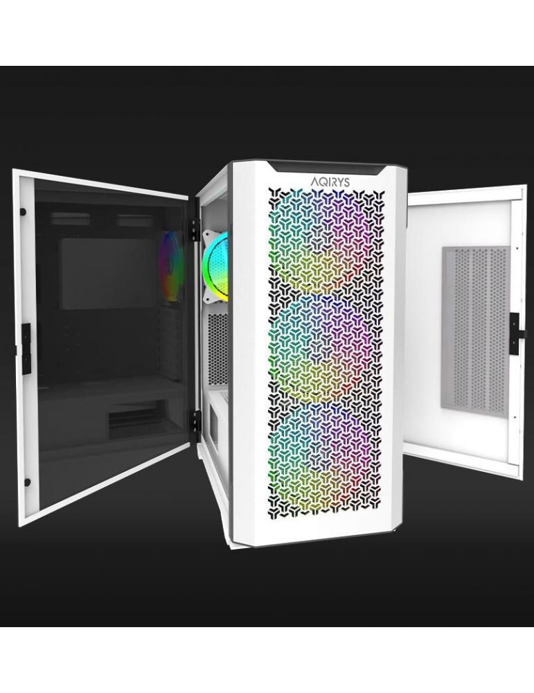 Carcasa Aqirys Aquilla Midi Tower White TECHNICAL DATA Case type: Midi Tower Materials: Tempered Glass with hinge(left side panel) 0.9 mm SPCC steel ABS Metal mesh M/B support: Mini-ITX Micro-ATX ATX E-ATX PSU support: ATX 175 mm maximum length (bottom installation) VGA support: 395 mm maximum length *270 mm with side fans/AIO installed CPU cooler support: 170 mm maximum height Liquid cooling support: Yes Front mount - 120/240/280/360/420* Rear mount - 120mm Top panel - 120/240/280/360* Side panel - 120/240mm * (*slim radiators max 35mm thickness) Drive bays: 2x 3.5 2x 2.5 Expansion slots: 7 Front panel I/O: 1x USB 3.0 2x USB 2.0 HD Audio LED button Illumination: ARGB (included ARGB hub controller & RF remote) Supported fans: 9 pieces - Rear 1x 120/140 mm Front 3x 120/140 mm Top 3x 120/2x 140 mm Side 2x 120mm Installed fans: 4 pieces - Rear 1x 140 mm (RGB no PWM) Front 3x 140 mm (RGB no PWM) Special features: removable front panel removable magnetic dust filter PSU chamber cable management outlets Dimensions (LxWxH): 479 x 233 x 493 mm Weight: 9750 g Color: Black EAN: 5949161380789 https://www.aqirys.com/product/aquilla
