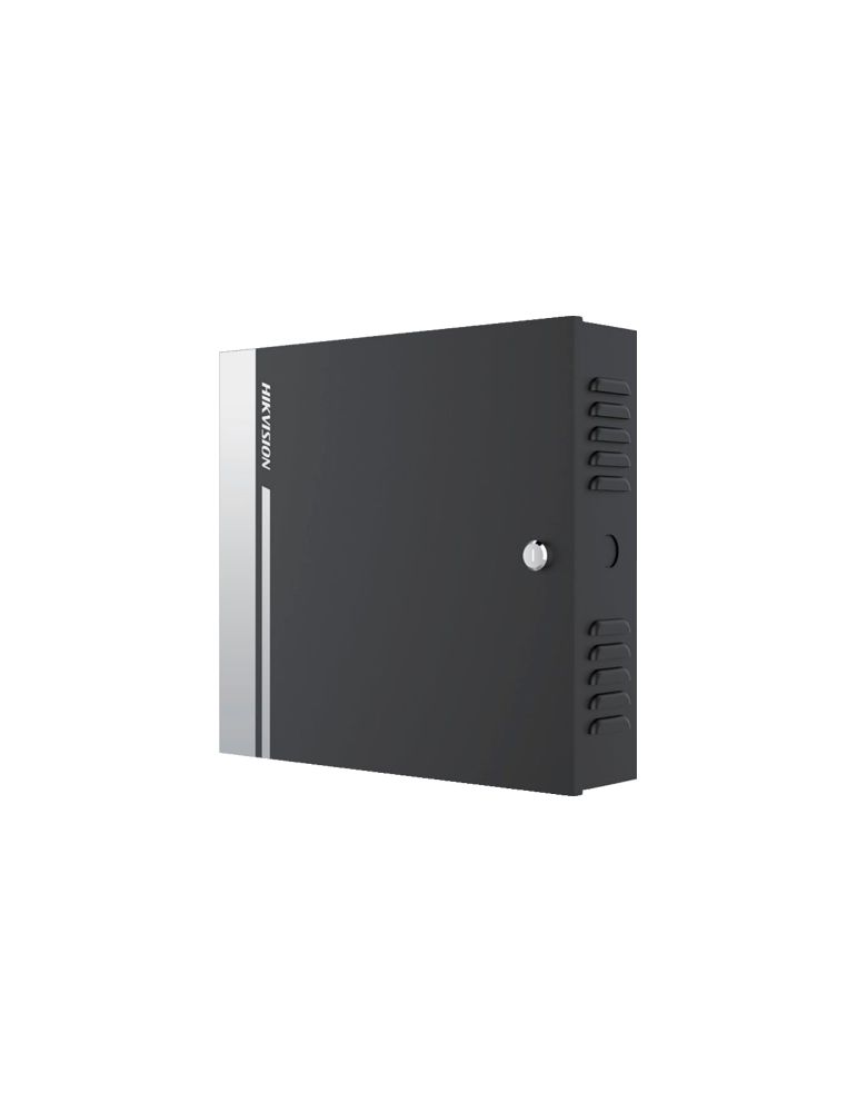 DS-K2814 are un procesor rapid de 32 bit. Datele de comunicare sunt criptate pentru a imbunatati siguranta sistemului. Interfata RS485 si Wiegand (W26/W34), compatibilitate cu cititoare terta parte. Controlerul suporta operatiuni offline. Dispune de un tamper pentru siguranta sporita. Posibilitate de alimentare back-up cu acumulator.Model/Producator: HIKVISIONNr. de usi controlabile: patru usiCapacitate cititoare: 1 cititoare interfata RS-485 / 4 cititoare interfata Wiegand 26/34Conectare: TCP/IP RS-485 Wiegand (W26/W34)Capacitate memorie interna: 10 000 utilizatori (carduri) 50 000 evenimenteInterfete IN:: 1 x interfata retea (10/100M) / 4 x senzor usa / 4 x buton iesire / 3 x Alarma IN / 1 x Tamper / 1 x RS485Tensiune alimentare: 100~240 VAC min. 4W max. 100WTemperatura de functionare: -20°C ~ +65°CDimesiune: 370mm x 345mm x 90mmInterfete OUT: 4 x Releu / 4 x Alarma