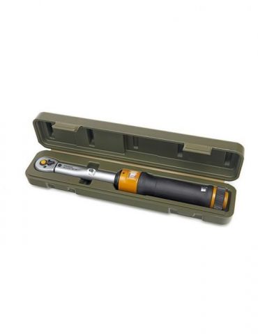 Cheie dinamometrica standard. Mecanism cu click-et reversibil pentru suruburile cu filet pe dreapta sau pe stanga. Mecanism pentru inversarea sensului pentru rotire spre stanga sau dreapta.La atingerea momentului de trosiune dorit decuplarea se face automat si este semnalizata printr-un click distinct semnalizat atat auditiv cat si palpabil.Coada masiva din otel oval, finisata pentru a preveni ruginirea: acoperire cu nichel in dublu strat si finisat mat cu un singur strat de crom.Calibrare piesa cu piesa si inspectie finala individuala. Fiecare cheie este inseriata cu laser, pentru identificarea exacta a produsului Manerul construit ergonomic face posibila fixarea cheii dinamometrice in pozite centrala. Foarte important pentru decuplarea exacta la fortele dorite. Micro-scala aditionala pentru reglare fina.Display analogic clar si lizibil pentru stabilirea cu exactitate a nivelului de torsiune dorit.Reglaj foarte simplu al momentului de decuplare prin rotirea inelului de la capatul manerului pana la reglarea valorii dorite apoi glisarea acestuia in pozitia initiala.Pentru strangerea tuturor tipurilor de suruburi pana la M8 ( cap hexagonal 13mm).Cheile dinamometrice Micro-Click sunt unelte de precizie. - Livrare din stoc (24h). Pentru stocul actualizat va rugam sa ne contactati. - Transport gratuit.