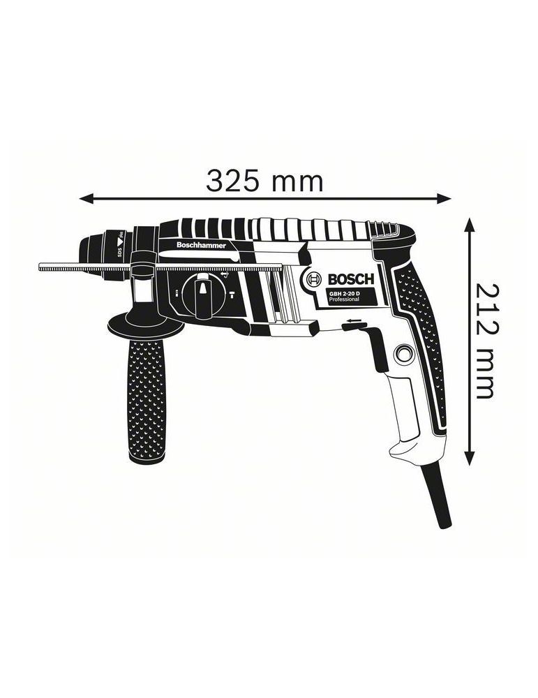 Ciocan rotopercutor SDS-plus Bosch GBH 2-20 D Professional Avantaje client: Performante ridicate la gaurire şi un randament cu 30% mai mare la daltuire decat al celorlalte ciocane rotopercutoare din segmentul sculelor electrice recent lansate Uşor şi compact ideal pentru lucrul deasupra capului Constructie robusta modulara pentru o durata lunga de viata Posibilitati de utilizare diversificate prin functia de daltuire Cuplaj de suprasarcina pentru protejarea utilizatorului şi a sculei electrice Functionare dreapta/stanga pentru eliberarea burghielor blocate Reglare fara trepte a turatiei pentru gaurire curata Stop percutie pentru gaurire in lemn şi otel Specificatii tehnice: Putere nominala: 650 W Energie de percutie max.: 17 J Numar percutii la turatia nominala: 0 - 4.200 percutii/min Turatie nominala: 0 – 1.300 rot/min Greutate: 23 kg Sistem de prindere: SDS-plus Diam. de gaurire in beton cu burghie pentru gaurire cu percutie: 4 – 20 mm Domeniu de utilizare optim beton cu burghie pentru gaurire cu percutie: 4 – 10 mm Diam. de gaurire in beton cu burghie carota: 68 mm Diam. maxim de gaurire in zidarie cu burghiu carota: 68 mm Diam. max. gaurire otel: 13 mm Diam. max. gaurire lemn: 30 mm Functionare dreapta/stanga Cuplaj de suprasarcina electronic Set de livrare: 3611B5A400 Limitator de reglare a adancimii 210 mm (1 613 001 010) Laveta pentru maşinaValiza profesionala (2 605 438 524) Maner suplimentar (2 602 025 141)