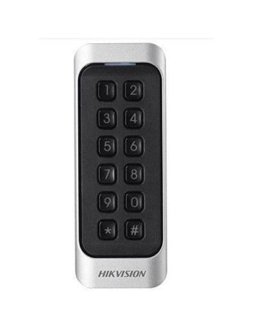 Producator: HIKVISIONCartele suportate: MIFARE 13.56MHzAlimentare: 12VDCConsum: max. 2WConectivitate: Wiegand 26/34 protocolDistanta de citire: max. 50mmTimp citire: max. 300 msTemperatura de functionare: -20°C ~ +65°C IP65Dimensiuni: 115 à 44 à 22mmAlte caracteristici: Led si Beeper incorporate TamperTastatura: 12 butoane (0~9 * #)