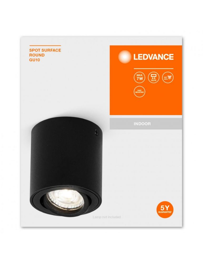 Spot Ledvance Surface Round, 1xGU10, max. 7W, IP20, 8x9.5cm, montaj aplicat, Negru - Caracteristici