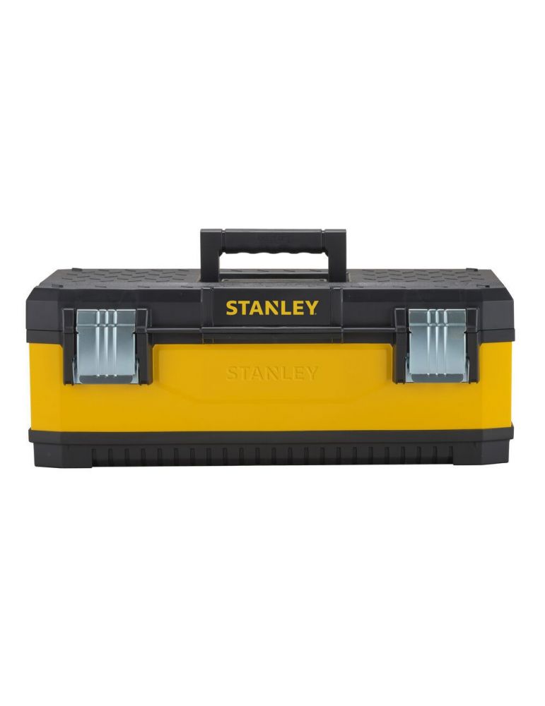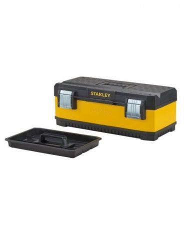 Stanley 1-95-613, Cutie de scule galvanizată din metal+plastic, 23inchCutie de scule din metal rezistentă, pentru regim greu, cu tavă detașabilă; capacul întărit îi permite să fie utilizată ca treaptă sau scaun.Caracteristici:Durabilitate: Combină beneficiile plasticului cu rezistența metalului. Marcare cu siglă în relief și de lungă durată.Ușurință: Transportați ușor sarcini foarte grele.Confort: Mâner ergonomic din două materialeSecuritate: Încuietori mari din metal rezistent la rugină cu lacăt pentru posibilități de blocareOrganizare: Tavă portabilă pentru scule manuale, piese mici și scule mari. Canelură în V cu riglă pentru a ține materialele în poziție pentru tăiereAdecvat: Pentru meserii și profesii multiple. Lucrul cu țevi și cherestea.