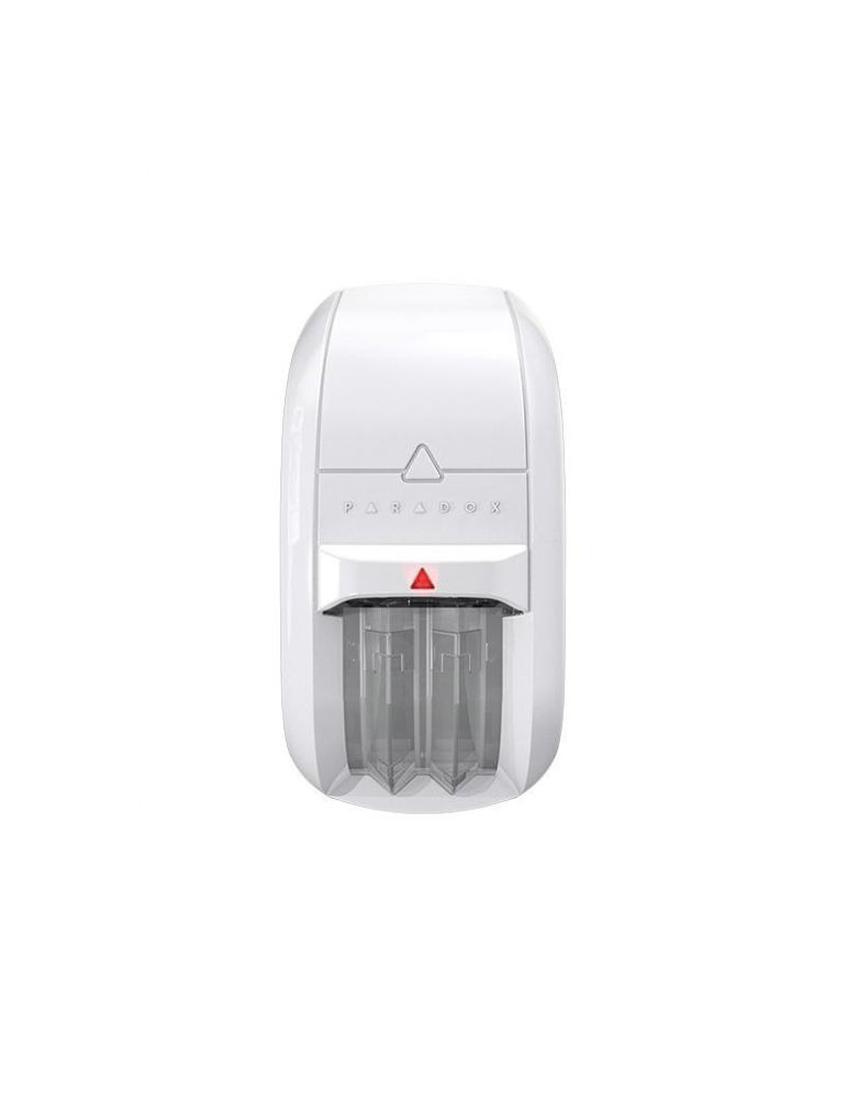 Detector dual cu tehnologie anti-mascare și imunitate la animale Paradox NV75MX; 2 elemente duale cu optică Mironel; 2 elemente IR active, care permit detecția anti-mascare; Acoperire de până la 16m cu unghi de 90° - EN50131-2-2 Grad 3; Lentile Mironel în W cu imunitate la animale și zonă de infiltrare (Creep Zone); Imunitate la animale: animalele sub 50cm nu vor fi detectate; NV75MX - funcționează în mod adresabil; Temperatură: - 35 până la 50 grade Celsius; Umiditate: 95% fără condensare; Dimensiuni: 128 x 62 x 54 mm; Greutate: 120 grame