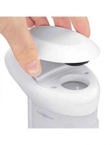 Doar puneți mâinile sub dozator și acesta va elibera automat cantitatea potrivită de săpun. Este o soluție care te protejează 100% împotriva bacteriilor dăunătoare. Aparatul este alimentat de 4 baterii clasice AAA, pe care le puteți înlocui cu ușurință. Partea transparentă a dozatorului vă permite să vizualizați în mod convenabil nivelul conținutului