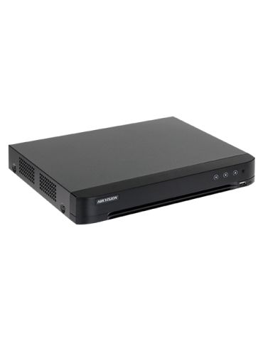 DVR-ul iDS-7208HUHI-M1-X(4A+8/4) are urmatoarele caracteristici: Comprimarea imaginilor H.265 Pro+ ajuta la reduce costurile de stocare a datelor; Semnal compatibil: HDTVI/AHD/CVI/CVBS/IP; Inregistrare cu rezolutie de pana la 4K; Playback Smart Search; Alarma IN/OUT; Detectia miscarii 2.0 ajuta la eliminarea alarmelor false prin clasificarea tintelor om/vehicul; Functii inteligente; Posibilitatea de limitare a benzii de transmitere date; Administrare retea: Hik-Connect si DDNS. Model / producator: HIKVISIONInregistrare: 8MP@8 fps 5MP/3K@12 fps 4MP@ 15 fps 3MP @ 18 fps 1080p/720p@30 fpsCompresie: H.265 Pro+/H.265 Pro/H.265/H.264+/H.264Redare: 8 canale sincronizateInterfete: 8 x BNC 1 x HDMI 1 x VGA 1 x RJ45 Gigabit 1 x RS-485 1 x USB 2.0 2 x USB 3.0Stocare: 1 x HDD SATA max. 12TB (neinclus)Alimentare: 12V DC 2AConsum: max. 24W (fara HDD)Dimensiuni: 320 à 240 à 48 mmAnaliza video (VCA): Detectie miscare 2.0 pe toate canalele analog eliminare alarme false prin clasificarea persoanelor/vehiculelor comparare/recunoastere faciala (4 canale) protectie perimetrala etc.Audio: 1 x RCA IN 8 x Audio 'over coaxial' 1 x RCA OUTGreutate: 2 kg (fara HDD)Temperatura de operare: -10°C ~ +55°CCamere compatibile: HDTVI AHD CVI CVBS Analog + 8 ch. IP max. 8MPAlarma: 8 IN/ 4 OUT