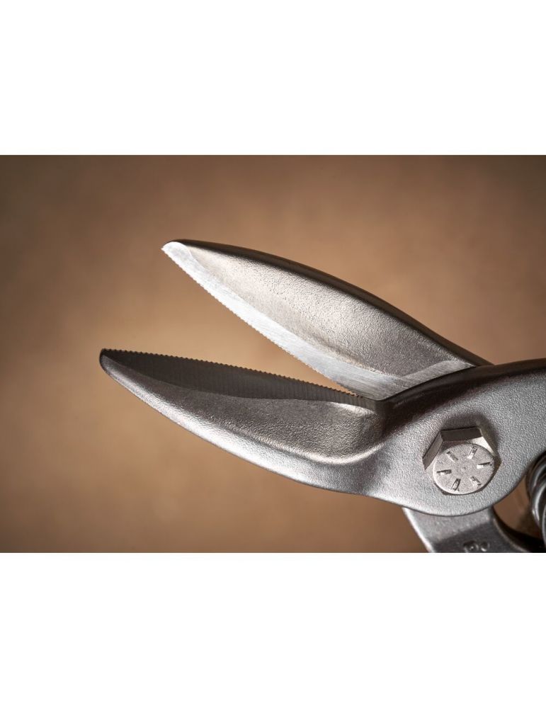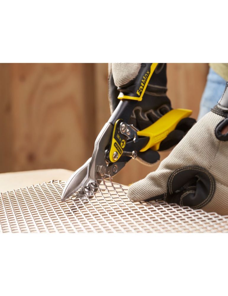 STANLEY® FATMAX® Foarfeca tabla cu taiere inversaCaracteristici si beneficiiDeblocarea automată a prin simpla apasare pe manereTaie oțeluri de 0,7 mm până la 1,2 mmDepășește standardele ANSI pentru performanțe de tăiere și durabilitateFabricat din oțel aliat forjat pentru rezistență și durabilitateMuchiile împiedică alunecarea la tăierePotrivit pentru tăierea aluminiu, tabla UPVC, plasă de sârmă, piele, cupru și plasticLamele dințate care favorizează menținerea tablelor în timpul tăierii