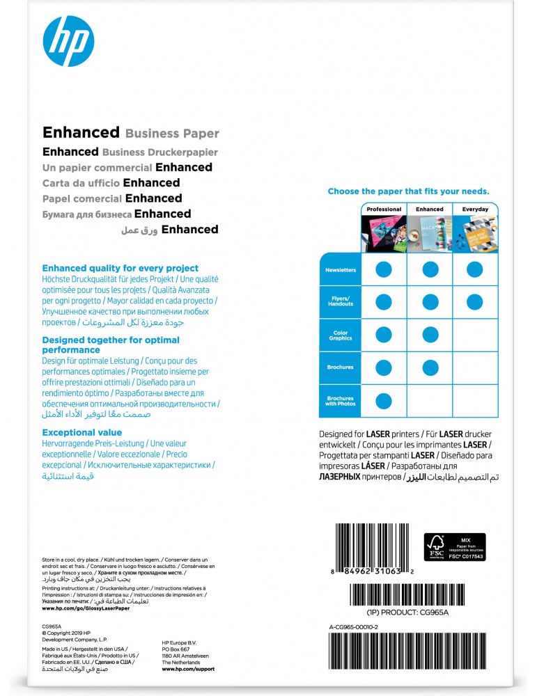 Hârtia laser lucioasă HP Professional are un finisaj uniform şi lucios care asigură documentelor culori bogate şi un aspect de înaltă calitate. Obţineţi performanţe optime cu imprimantele HP Color LaserJet. Compatibilă cu majoritatea celorlalte imprimante laser şi copiatoare.