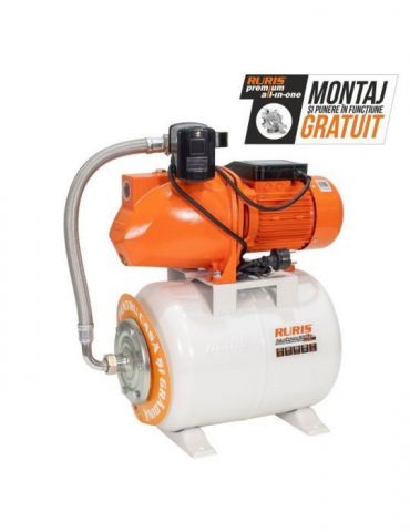 Hidroforul RURIS AquaPower 3009S este echipat cu o pompă al cărui corp este din fontă, un vas de expansiune de 24l, comutator de presiune, manometru pentru verificarea presiunii și un furtun flexibil.