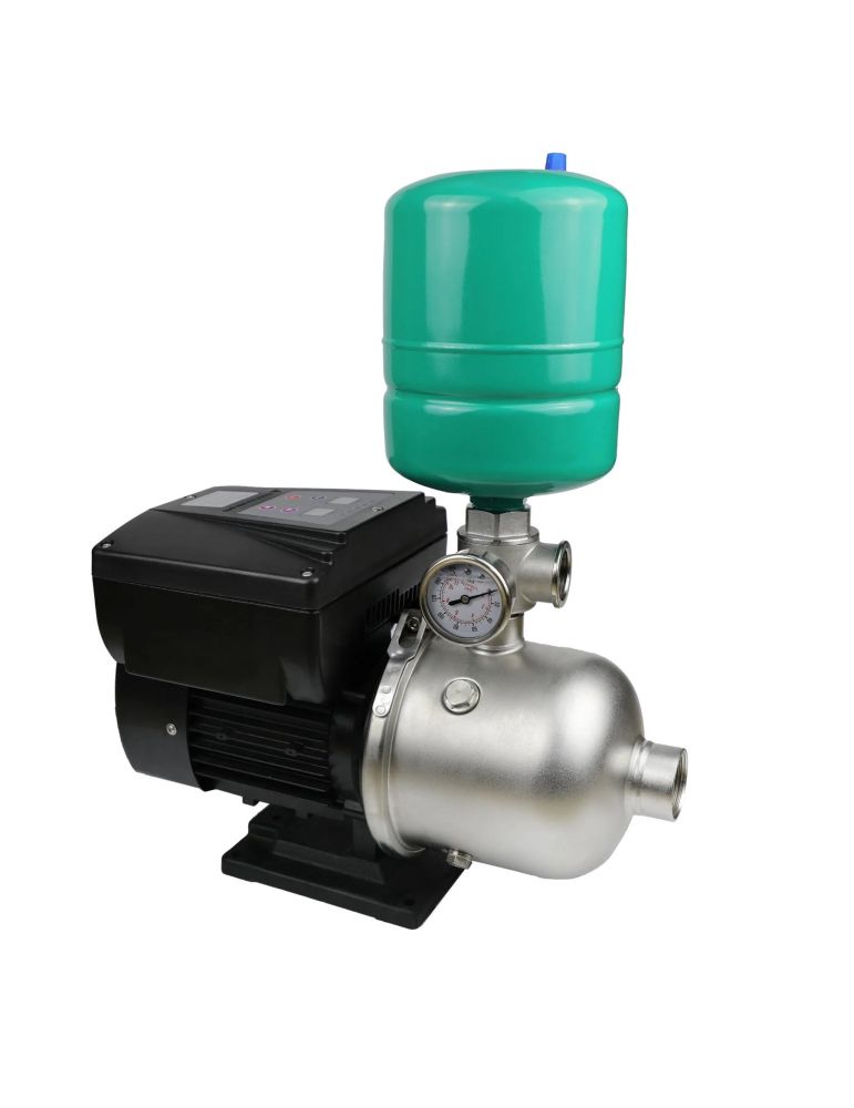 Date tehnice Debit 4 m3/h Inaltime totala de pompare 45m Putere: 11kW Model pompa: CMF4-60T(△) Tensiune electrica de intrare: 1x220 Vca Frecventa tensiune alimentare: 50Hz Frecventa tensiune iesire: 20 – 50Hz Senzor de presiune: 4-20mA +24V 10bar Setari presiune apa: 0.5 – 9.0 bar Setare presiune rezervor presurizat: presiune presetata x 0.6 Temperatura ambientala: 0 – 40°C Scadere presiune necesara pornirii pompei: 03bar Cerinte instalare: legare la pamant obligatorie Montaj convertizor frecventa pe pompa Tip display: 2 x Display cu LED-uri