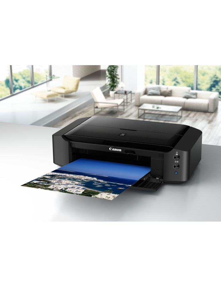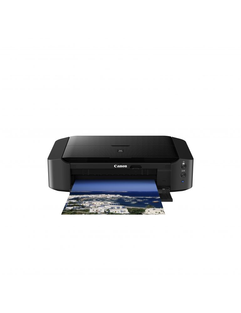 Canon PIXMA iP8750. Tehnologia tipăririi: Cu jet de cerneală, Rezoluţia maximă: 9600 x 2400 DPI. Mărimea maximă de tipărire: A3+ (330 x 483 mm). Imprimare fără margini. Wi-Fi. Imprimare directă. Culoarea produsului: Negru