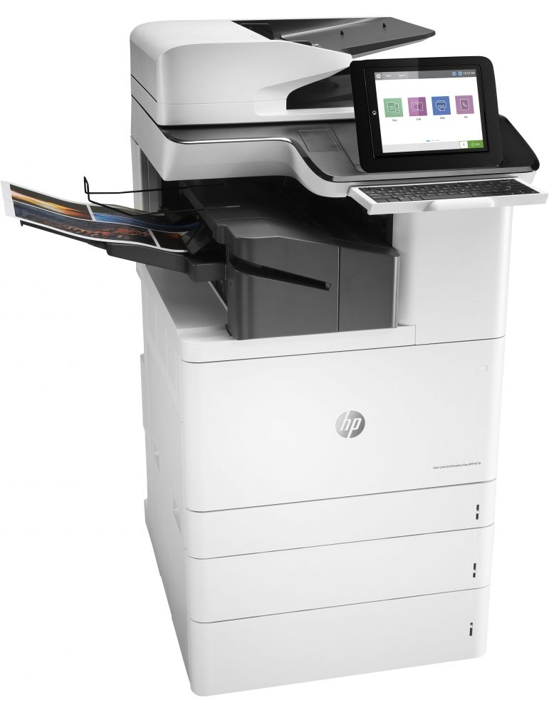 HP Color LaserJet Enterprise Flow MFP M776zs, Imprimaţi, copiaţi, scanaţi şi lucraţi cu faxul, Imprimare prin port USB frontal; scanare către e-mail; imprimare faţă-verso; alimentator ADF de 200 de coli; Dualband Wi-Fi; ROAM. Tehnologia tipăririi: Cu laser, Imprimare: Imprimare color, Rezoluţia maximă: 1200 x 1200 DPI, Viteza de tipărire (color, calitate normală, A4/US Letter): 45 ppm. Copiere: Copiere color, Rezoluţie maximă de copiere: 600 x 600 DPI. Scanare: Scanare color, Rezoluţia optică de scanare: 600 x 600 DPI. Trimitere faxuri: Trimitere fax color. Funcții duplex: Copie, Imprimă, Scanare. Dimensiune maximă hârtie seria-A ISO: A3. Wi-Fi. Imprimare directă. Culoarea produsului: Negru, Alb
