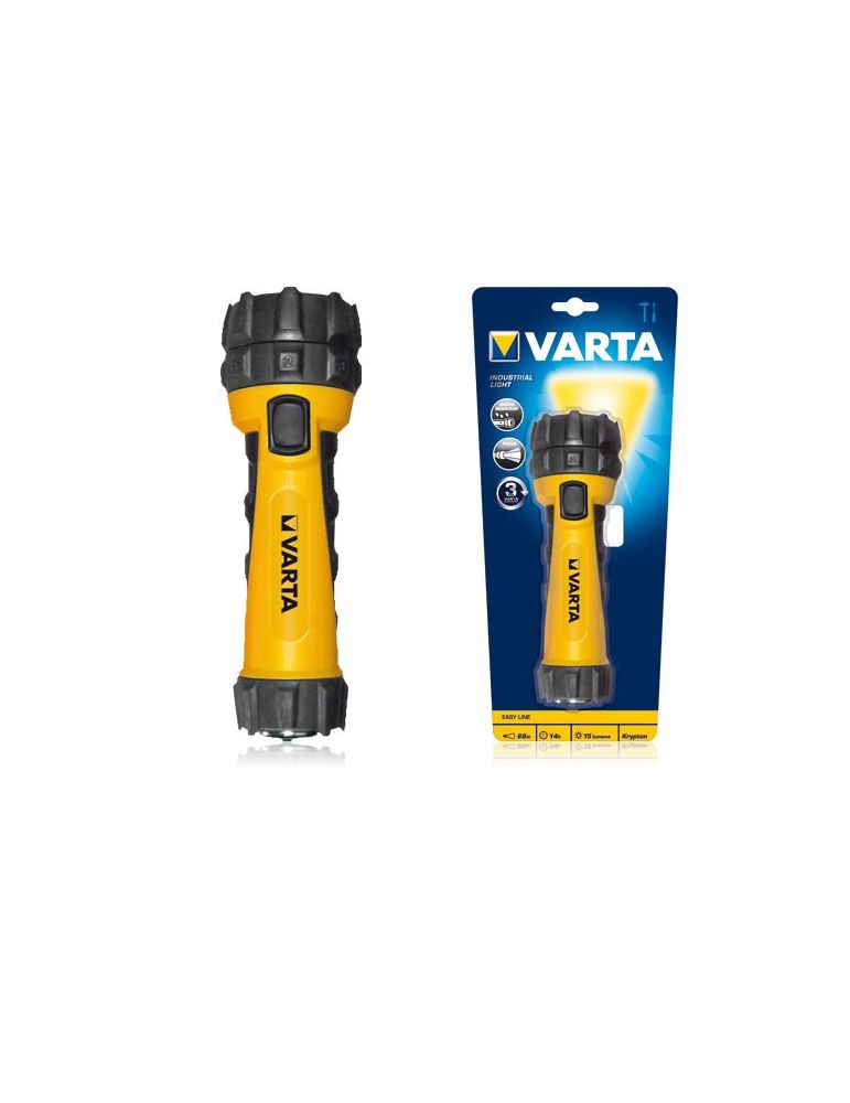 Varta Industrial Light 2D. Tip lanternă: Lanternă de mână, Culoarea produsului: Negru, Galben, Material carcasă: Cauciuc. Tip de lampă: LED, Putere lampă: 0,5 W, Flux luminos: 25 lm. Durata de viață a bateriei: 160 h. Greutate: 469 g, Diametru cap: 6,8 cm