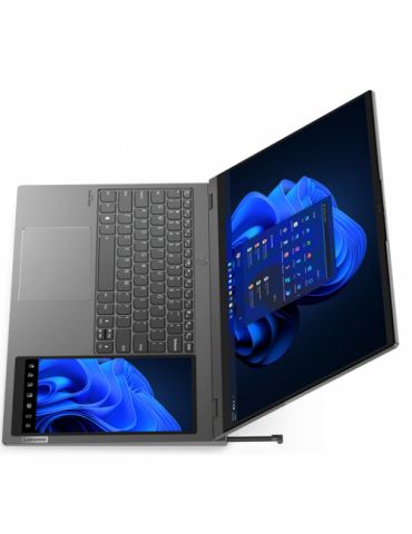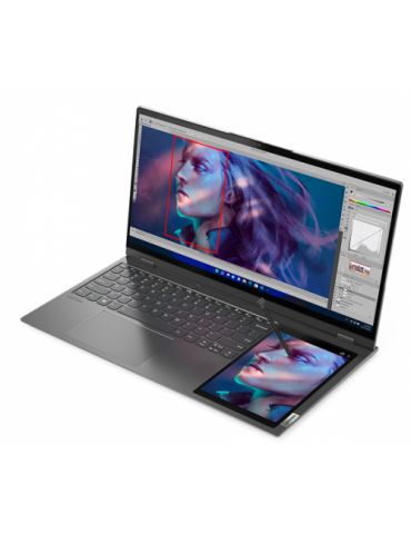 Laptop Lenovo ThinkBook Plus G3 IAP, 17.3" 3K (3072x1440) Main Screen IPS 400nits Anti-glare, 120Hz, Touch + 8" HD (800x1280) Secondary Screen IPS 350nits Glossy, AF (anti-fingerprint), Touch, Intel Core i7-12700H, 14C (6P + 8E) / 20T, P-core 2.3 / 4.7GHz, E-core 1.7 / 3.5GHz, 24MB, Video: Integrated Intel Iris Xe Graphics, RAM: 32GB Soldered LPDDR5-4800, SSD: 1TB SSD M.2 2280 PCIe 4.0x4 NVMe, Optical: no ODD, None, Speakers: Stereo speakers, 2W x2, Dolby Audio, audio by HARMAN, Camera: IR & FHD 1080p with Privacy Shutter, LAN: None, WLAN Wi-Fi 6E 11ax, 2x2, Bluetooth 5.1, WWAN (3G/4G): None, Fingerprint: Touch Style, I/O Ports: 1x USB 3.2 Gen 1, 1x USB 3.2 Gen 2 (Always On), 1x USB-C 3.2 Gen 2 (support data transfer, Power Delivery 3.0 and DisplayPort 1.4), 1x Thunderbolt 4 / USB 4 40Gbps (support data transfer, Power Delivery 3.0, and DisplayPort 1.4), 1x HDMI, up to 4K/60Hz, 1x Headphone / microphone combo jack (3.5mm), 100W USB-C Slim (3-pin), Battery: Integrated 69Wh, Keyboard: Backlit, English, Color: Storm Grey, Weight: Less than 2.0 kg (4.41 lbs), Dimensions: 410.9 x 230.2 x 17.95 mm (16.18 x 9.06 x 0.71 inches), OS: Windows 11 Pro 64, Romanian / English