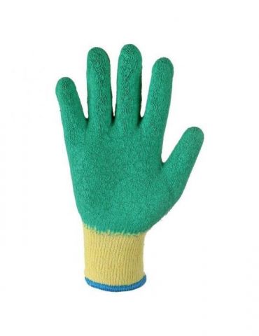 Manusi tricotate fara cusaturi din fire mixte puternice impregnate cu un strat gros de latex in palma si pe degete. Aceste manusi sunt recomandate pentru diverse aplicatii inclusiv in logistica depozitare constructii gradinarit activitati recreative servicii municipale si lucrul in medii usor umede. Date tehnice: Material: tercot Norme europene: EN 388 EN 407 EN 420 Strat/imersie: latex Manseta: elastica Rezistenta la uzura (EN 388): 3 Rezistenta la taiere (EN 388): 1 Rezistenta la rupere (EN 388): 3 Rezistenta la perforare (EN 388): 3 Caldura de contact (EN 407): 2 Culoare: galben-verde Marimi disponibile: 10 Set livrare: Cantitate 1 pereche