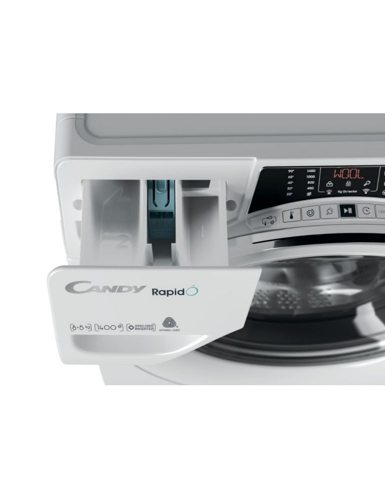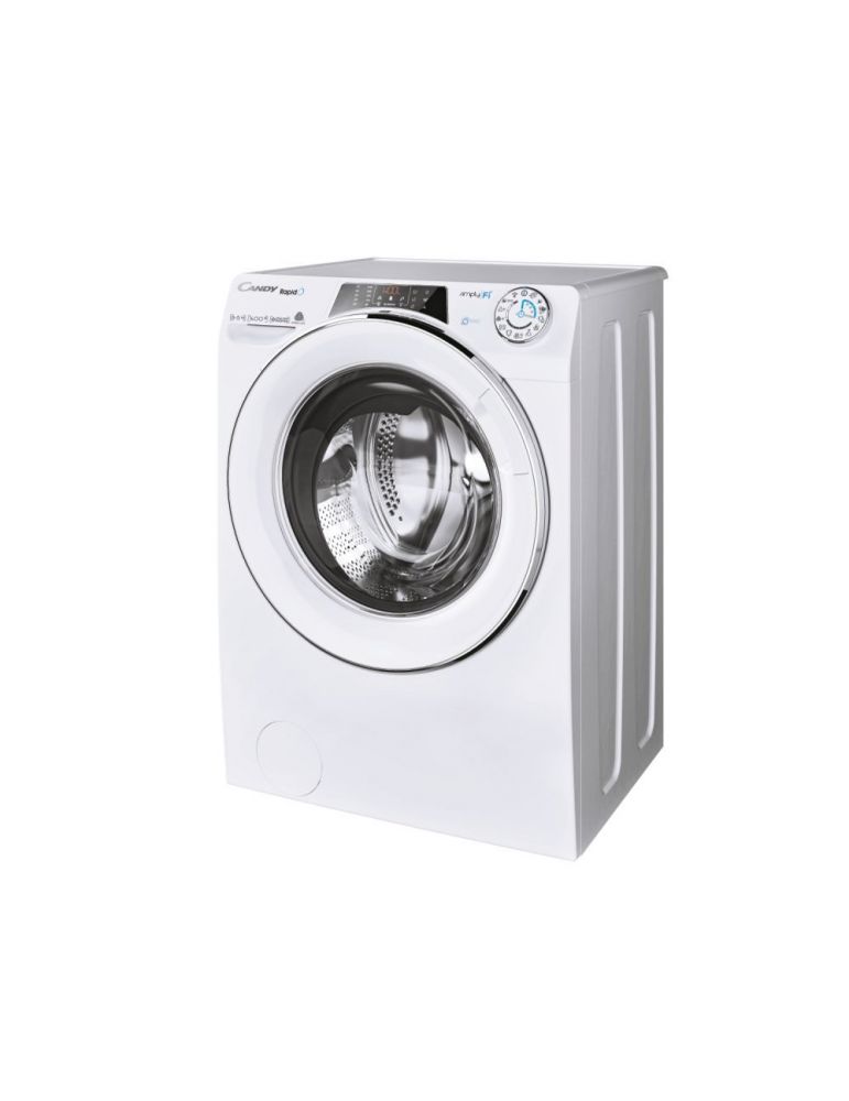 Candy ROW4854DWMCE/1-S. Tipul de încărcare: Încărcare frontală, Amplasare aparat: De sine stătător, Culoarea produsului: Alb. Capacitatea de uscare: 5 kilograme, Viteza de centrifugare maxima: 1400 RPM, Clasă centrifugare: B. Clasă eficiență energetică (spălare): A, Clasă eficiență energetică (spălare & uscare): D, Water consumption washing: 44 L. Adâncime: 530 milimetri, Lățime: 600 milimetri, Înălţime: 850 milimetri