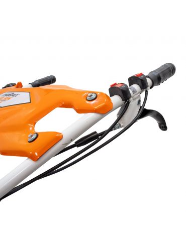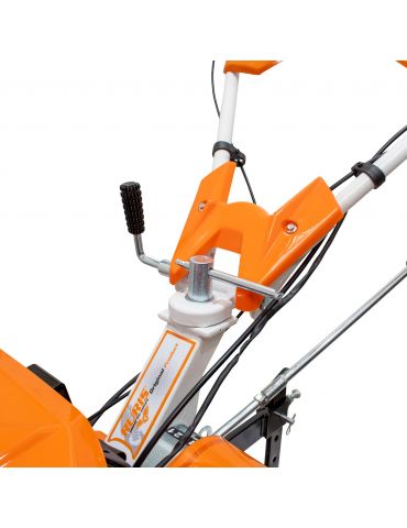 Deși cântărește 80kg, este ușor de manevrat datorită coarnelor metalice reglabile sus-jos și a mânerelor din cauciuc concepute pentru a atenua vibrațiile generate de motosapă. Motosapa îți permite să lucrezi simplu și rapid nu doar pe timp de zi, dar și seara, fiind dotată cu un sistem de iluminare led.