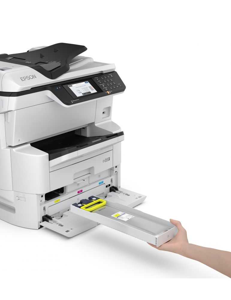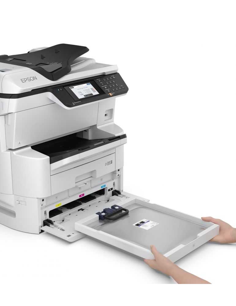 Epson WorkForce Pro WF-C878RDWF. Tehnologia tipăririi: Cu jet de cerneală, Imprimare: Imprimare color, Rezoluţia maximă: 4800 x 1200 DPI. Copiere: Copiere color, Rezoluţie maximă de copiere: 600 x 1200 DPI. Scanare: Scanare color, Rezoluţia optică de scanare: 600 x 600 DPI. Trimitere faxuri: Trimitere fax color. Funcții duplex: Copie, Fax, Imprimă, Scanare. Dimensiune maximă hârtie seria-A ISO: A3. Wi-Fi. Imprimare directă. Culoarea produsului: Negru, Alb