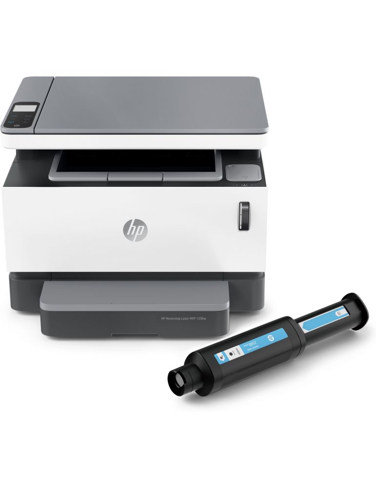 HP Neverstop Laser MFP 1200w, Imprimare, copiere, scanare, Scanare în PDF. Tehnologia tipăririi: Cu laser, Imprimare: Imprimare mono, Rezoluţia maximă: 1200 x 1200 DPI. Copiere: Copiere mono, Rezoluţie maximă de copiere: 600 x 600 DPI. Scanare: Scanare color. Dimensiune maximă hârtie seria-A ISO: A4. Wi-Fi. Imprimare directă. Culoarea produsului: Negru, Alb