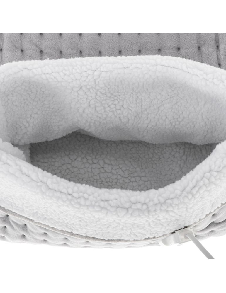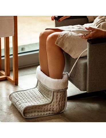 Dispozitivul va permite sa reglati temperatura de incalzire alegand unul dintre cele sase niveluri de incalzire. Dimensiunea incalzitorului este potrivita pentru picioare pana la marimea 46. Dispozitivul este echipat cu o functie de oprire automata dupa 90 de minute pentru a preveni supraincalzirea picioarelor. Exteriorul este confectionat din plus moale si din lana sintetica confortabila. Captuseala interioara din lana sintetica este detasabila, permitand spalarea acestuia pentru igiena.