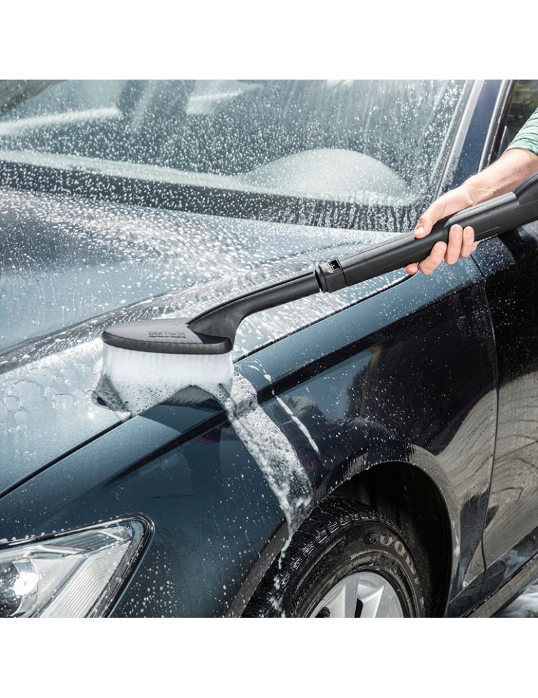 Peria practică de spălare are peri moi și este astfel ideală pentru curățarea suprafețelor sensibile și a suprafețelor care sunt greu accesibile de la exterior. Fie că este vorba de mașină, mobilier de grădină sau grila radiatorului - peria de spălare asigură o curățenie de protecție și este potrivită pentru toate aparatele de curățare cu presiune Kärcher K 2 până la K 7.