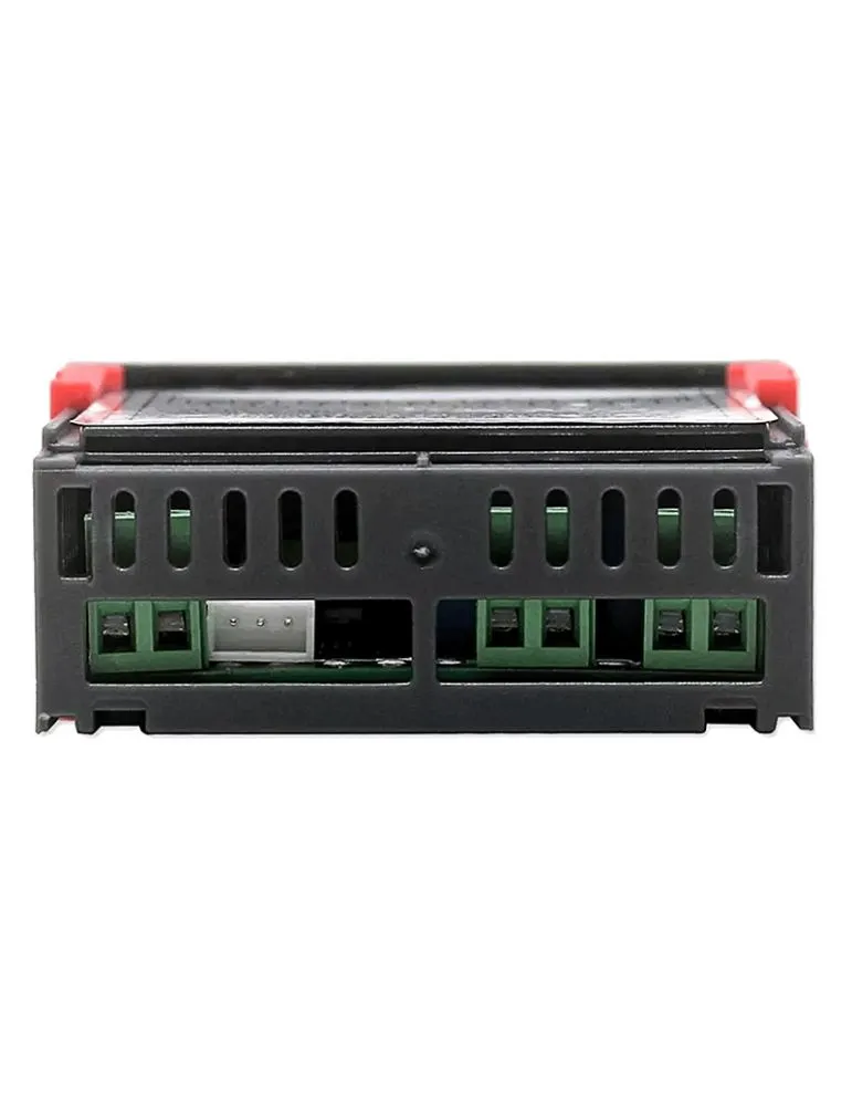 Regulatorul are două afișaje LED: 1 afisaj roșu pe care este afișată temperatura și unul albastru pe care este afișată umiditatea.