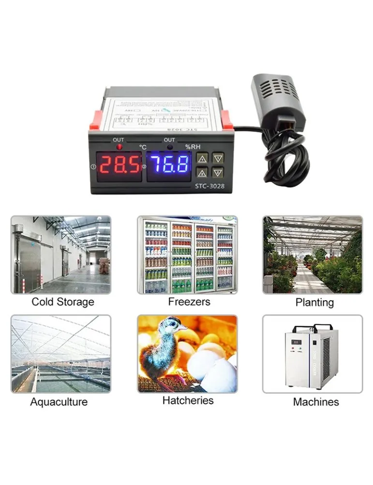 Senzorul de umiditate și temperatură STC-3028 este o soluție practica pentru utilizarea în multe proiecte unde este necesar să se controleze umiditatea și temperatura aerului în același timp, de exemplu, în depozite, hale de producție, camere de uscare, sere sau muzee, etc.