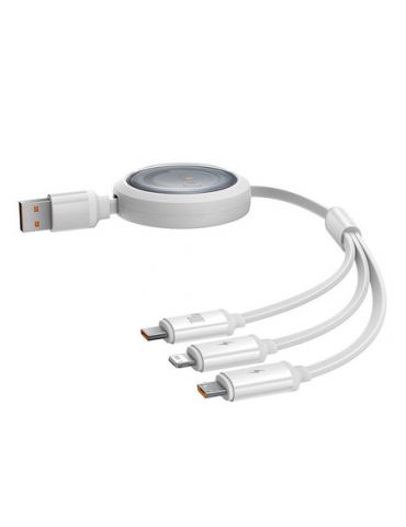 Cablu 3 în 1 Baseus Free2Draw USB către M+L+C 100W, 1,1m (alb).
