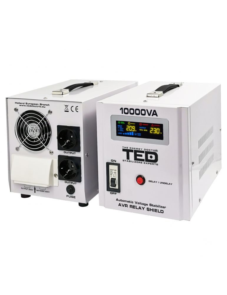 Stabilizator tensiune 6000W 230V cu 2 iesiri Schuko si sinusoidala pura + ecran LCD cu valorile tensiunii, TED Electric TED00007 - Caracteristici