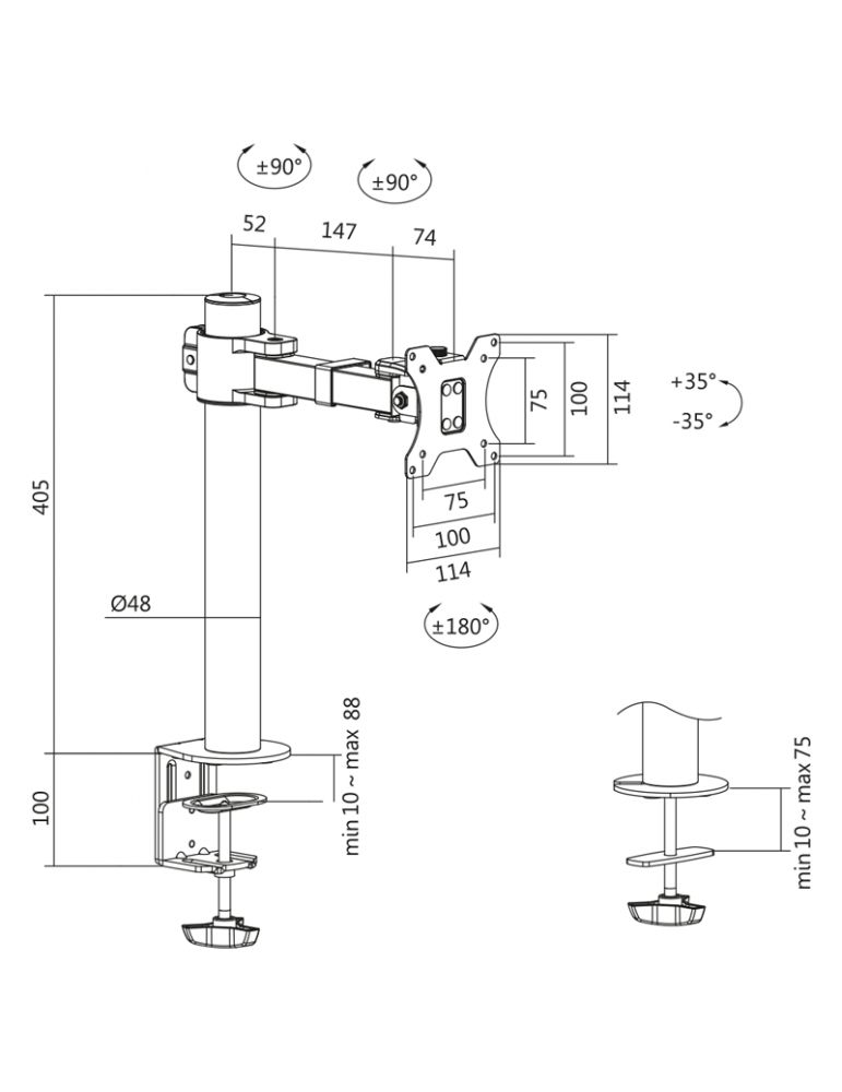 SUPORT de birou LOGILINK, pt 1 TV/monitor plat, diag. max 32 inch, rotatie, inclinare, verticala, max 9 Kg, negru, "BP0104" - Caracteristici