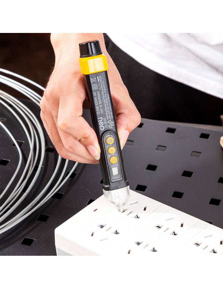 Tester de tensiune fără contact Deli Tools EDL8011, 12/48-1000V AC (negru) - Produse verificate de Tik.ro