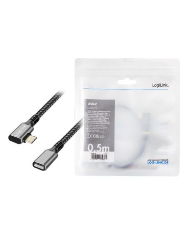 CABLU alimentare si date LOGILINK, pt. smartphone, USB 3.2, USB Gen Type-C (T) la USB Type-C (M) la 90 grade, 0.5m, PD 100W, 2 x
