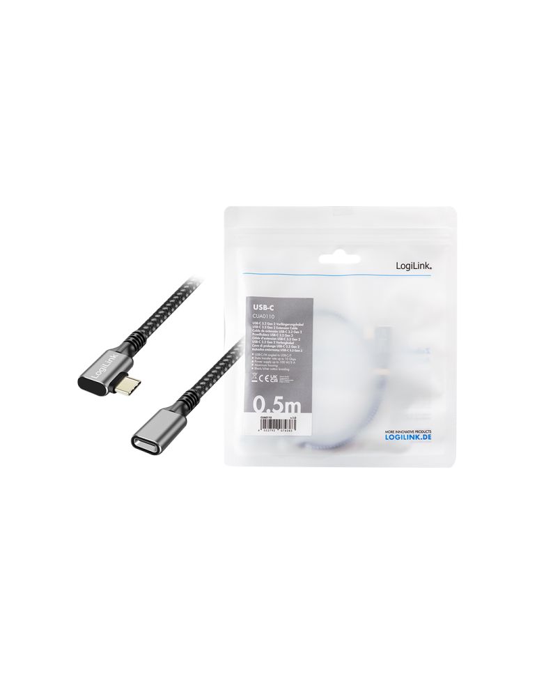CABLU alimentare si date LOGILINK, pt. smartphone, USB 3.2, USB Gen Type-C (T) la USB Type-C (M) la 90 grade, 0.5m, PD 100W, 2 x - Caracteristici