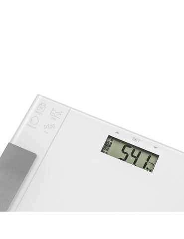 Dispozitivul are o capacitate de încărcare de până la 150 kg și măsoară cu o precizie de 100 de grame. Pornește automat atunci când pășiți pe cântar și se oprește automat atunci când este inactiv. Afișajul LCD mare cu iluminare albastră, care măsoară 74 × 28,5 mm, vă oferă chiar și posibilitatea de a selecta unitățile de măsură - kg / lb / st. Iar funcția de blocare a datelor asigură vizibilitatea datelor măsurate timp de 10 secunde după măsurare. Este alimentat de 1 baterie alcalină CR2032 de 3V, inclusă în pachet, iar o pictogramă indică nivelul scăzut al bateriei și supraîncărcarea.
