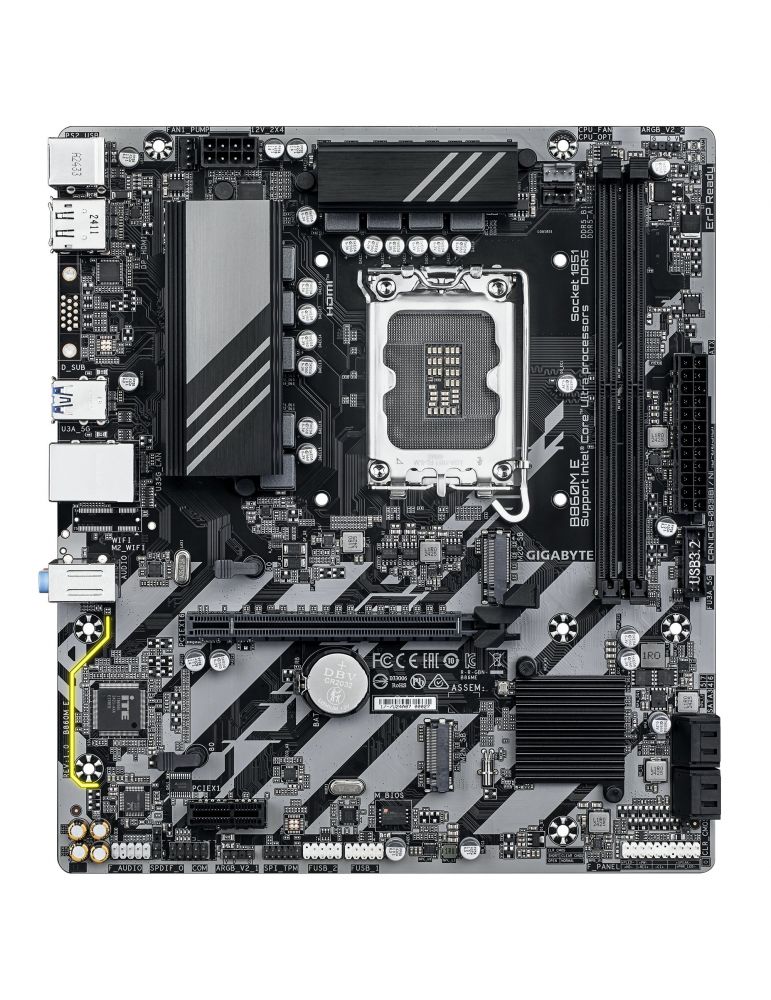 GIGABYTE B860M E, Intel, LGA 1851 (Socket V1), Intel Core Ultra (Series 2), LGA 1851, DDR5-SDRAM, 128 Giga Bites