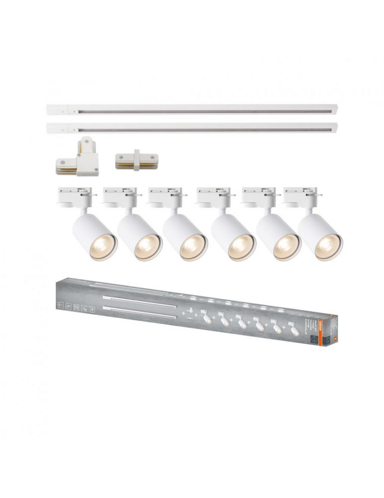 Sistem complet TRACKLIGHT OSRAM Elemental cu 6 proiectoare cu soclu GU10 si 2 sine monofazate de 1 metru, 1 conector liniar, 1 conector tip L, Alb